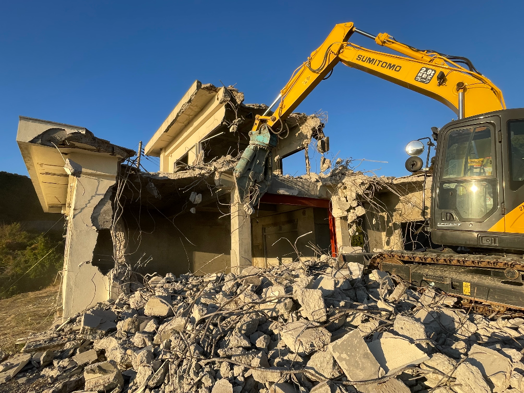 二階建てコンクリート解体工事中